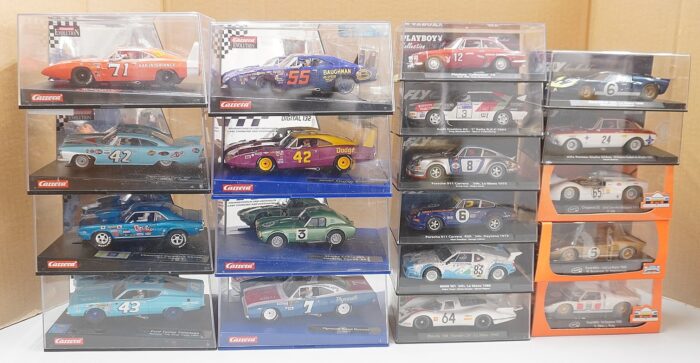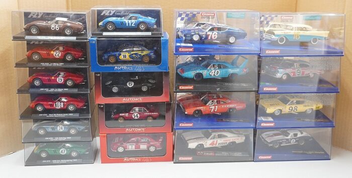 こちらのメーカーのスロットカー、フェラーリを含め合計233台が並ぶ光景は壮観そのもの。